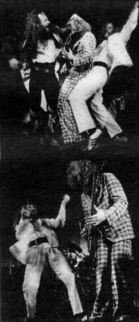 At this point, however, another backing tape begins. The sound of footsteps are heard, trooping down stairs backstage, and we 'evesdrop' on the band having a conversation as they go, which runs roughly as follows . . . .