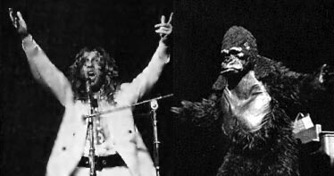 John's weather report varied slightly throughout the tour, but here is a typical example. His voice veered between the two extremes of blank boredom and strangulated bellowing. A roadie in a gorilla suit would gesticulate wildly behind him.