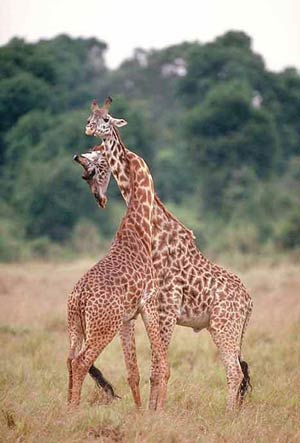 Over there in the undergrowth, two giraffes were necking.