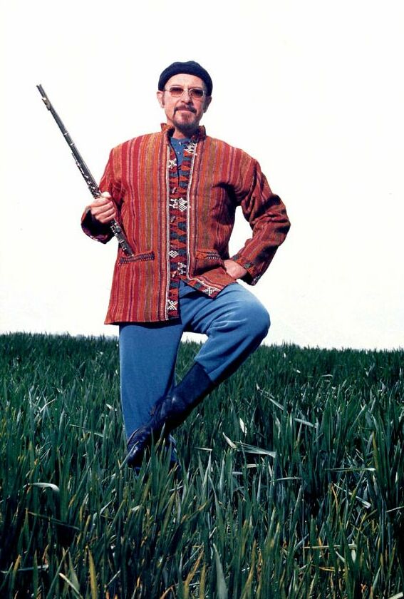 The group's image was duly changed to suit the new music. Out went the corduroy trousers and jean shirts; in came wardrobes of balloon-sleeve shirts, velvet pants and garish vests. Anderson cut the most memorable figure with his neo-Renaissance greatcoat, tights, codpiece and swashbuckling boots that gave his slight frame a deceptively towering appearance. The crowning touch was 'the stand' — Anderson's distinctive way of crooking up his right leg while playing the flute, so that he perched on the stage like a hairy, flightless bird. Now in his fifties, Anderson can still get the old leg up, although his hair has receded and the shaggy wardrobe was retired around the time Sid Vicious made safety pins a facial accessory. These days, he cuts a more modest figure up on the stage. The music, however, remains as adventurous as ever.