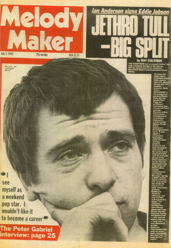 Ian Anderson has re-vamped Jethro Tull with sweeping changes in the line-up. OUT go pianist John Evan, drummer Barriemore Barlow and keyboardist David Palmer. IN comes the highly-rated keyboards player Eddie Jobson from U.K. plus a 20-year-old Los Angeles drummer, Mark Craney. REMAINING is the exceptional guitarist Martin Barre and top bassist Dave Pegg, the ex-Fairport Convention star who joined Tull a year ago.