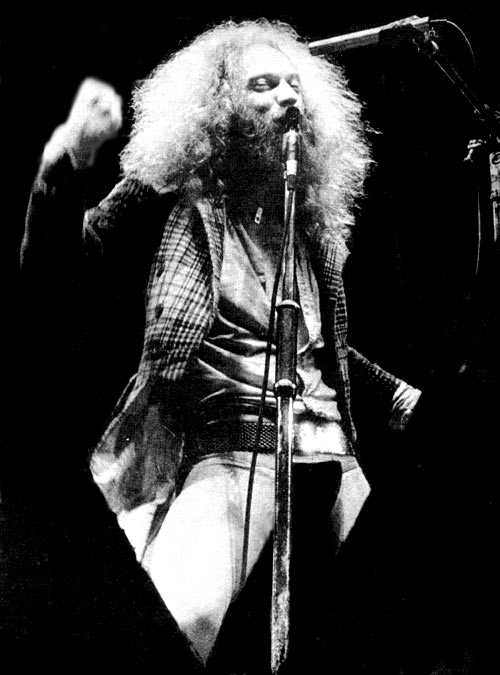 'Thick As A Brick' — the middle bit starting with the organ riff — made much more sense and showed Tull can reproduce their live sound on stage with no trouble. Yes, this was the madcap Anderson, dressed in tartan frock coat and knee-high boots. OK — so his flute technique wouldn't stand up alongside Roland Kirk or Herbie Mann, but Anderson is communicating to a lot of people. He talks and barks like a dog into the flute.