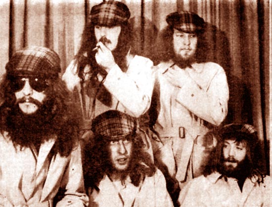 The group, pictured left, consists of (back, left to right): Jeffrey Hammond-Hammond, Martin Barre; (front, left to right): Ian Anderson, John Evan and Barrymore Barlowe [sic].