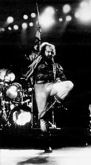 Most of all, I marvel that, as a teenager, I seriously wanted to pursue an instrument as cool, as down, as bitching, as the flute. To the ignorant, Ian Anderson is a figure of fun, a prancing, leering, wild-haired and bearded character in tights and a codpiece who played the flute while standing on one leg. Ian Anderson — stands on one leg. The more you think about it, the more fatuous a description it becomes. Why, it's like saying: Fatboy Slim — plays records and calls it a stage show.